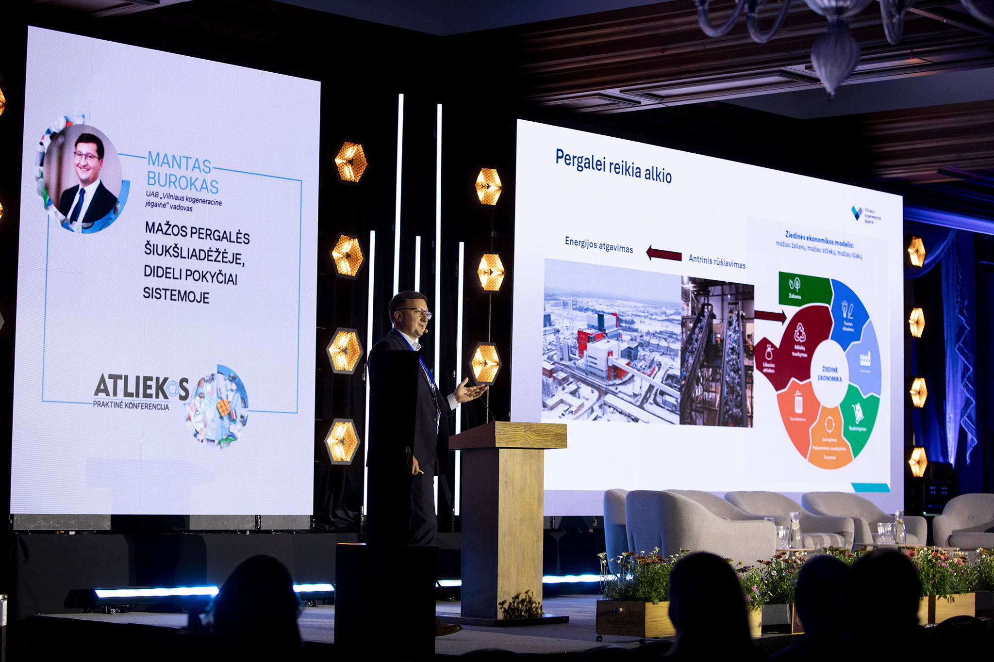 Renginio metu aptartos svarbiausios temos – žiedinės ekonomikos plėtra Lietuvoje, atliekų sektoriaus finansiniai iššūkiai, perdirbimo ir infrastruktūros plėtros poreikis, taip pat reguliaciniai pokyčiai, kuriuos būtina įgyvendinti jau šiandien. Daug dėmesio skirta ir technologiniams sprendimams bei inovacijoms, pristatytoms „Idėjų mugėje“, kur dalyviai dalijosi gerąja praktika ir ieškojo naujų bendradarbiavimo galimybių.